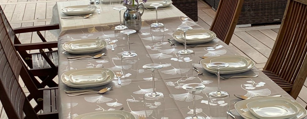 Het terras is gebouwd, het zeildoek is gespannen, de bank en tafel zijn opgesteld om groepen gasten te verwelkomen.